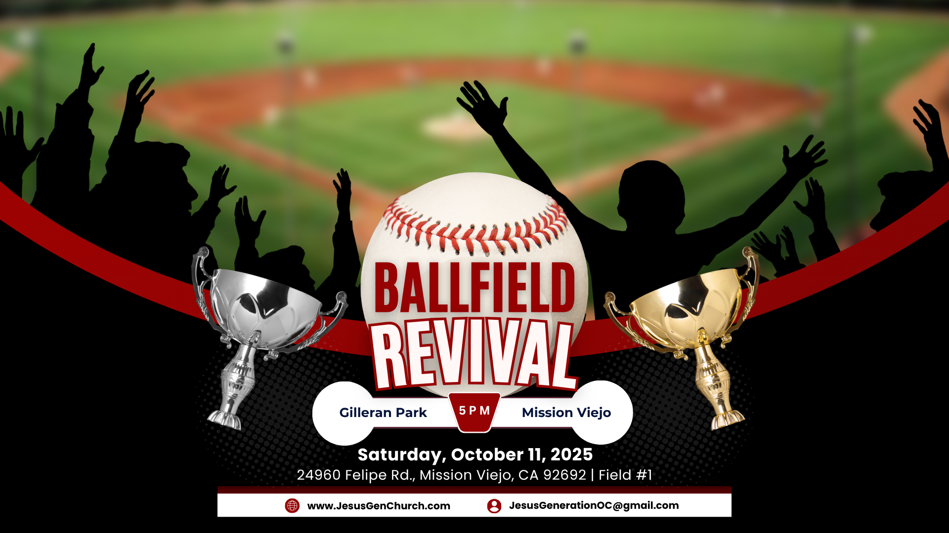 Join us for a powerful night of worship and preaching under the open sky, right on the baseball field! Bring your family, invite your friends, and get ready for a night where Jesus comes to meet YOU!